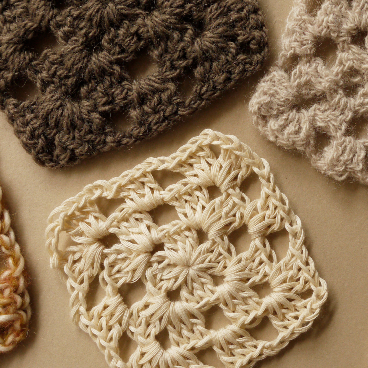 道場の初回は基本となるコースターから編んでいきます。初心者さんも大歓迎!(経験者さんは自分の編みたいものを相談して先生と進めてもOKです)