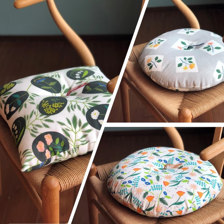 四角形(40*40cm)もしくは丸形(φ40㎝)の座布団どちらかひとつを制作します。