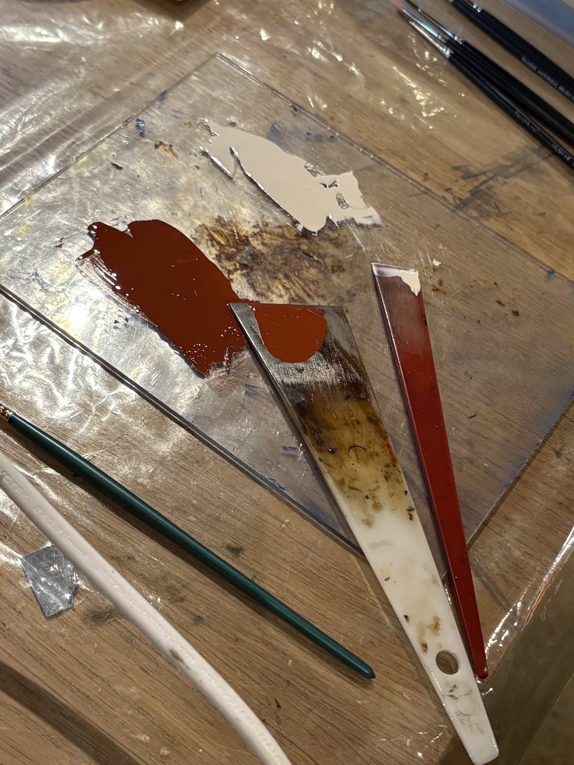 右側のこの白漆は、てならい堂の金継ぎ教室ではいままであまり使ってこなかったのですが、最近登場し気になる存在。。!