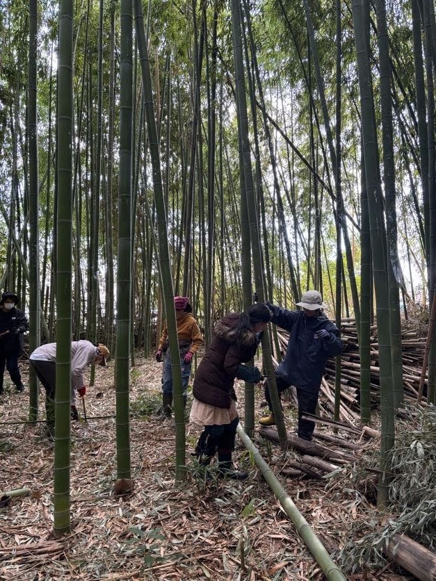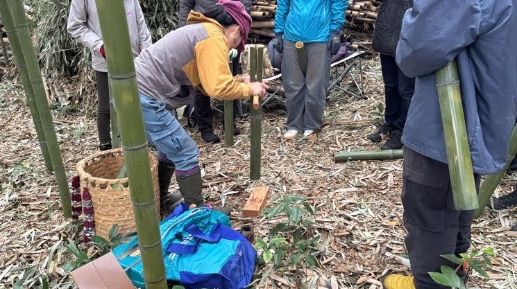 竹林の中で、体を動かして、お昼休憩をとって、お喋りして。
