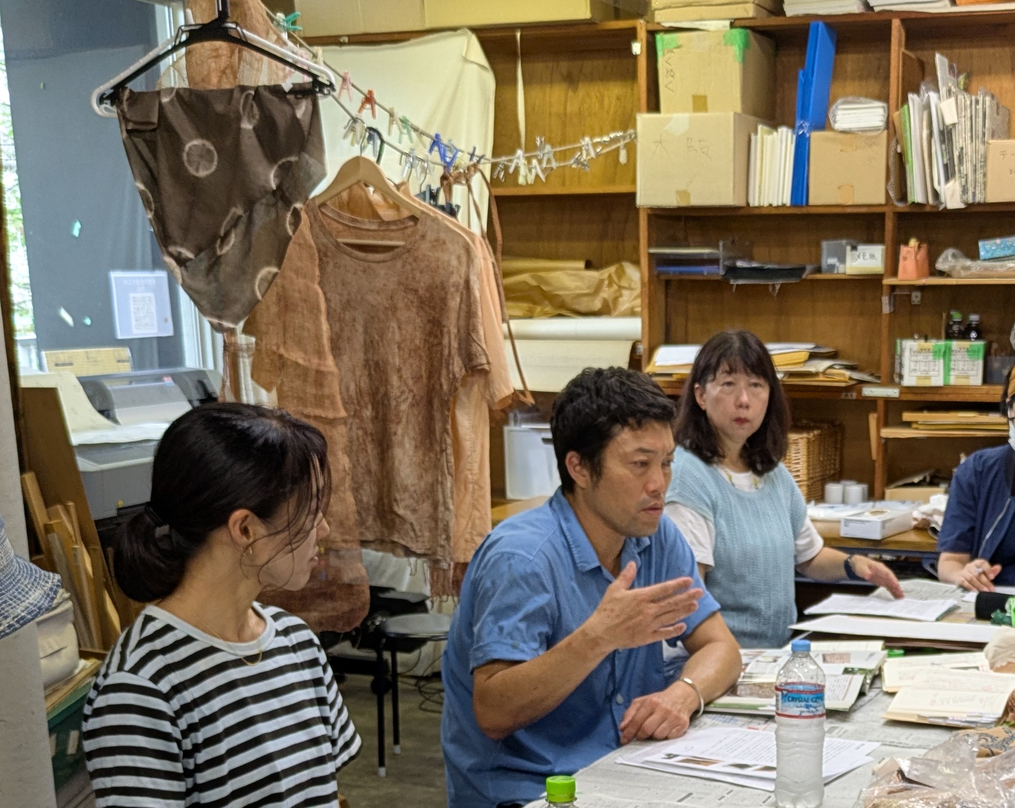 渋柿は知ってるけど。。。なんて声も聞こえてきますが、染料としてだけではなく、その効果効能を知れば知るほど皆さんの興味はどんどん増していき、熱く語る先生のお話しに引き込まれていきました。昔から『柿渋』をあらゆる生活の場面に使ってきた先人の知恵にも感慨深いものを感じます。