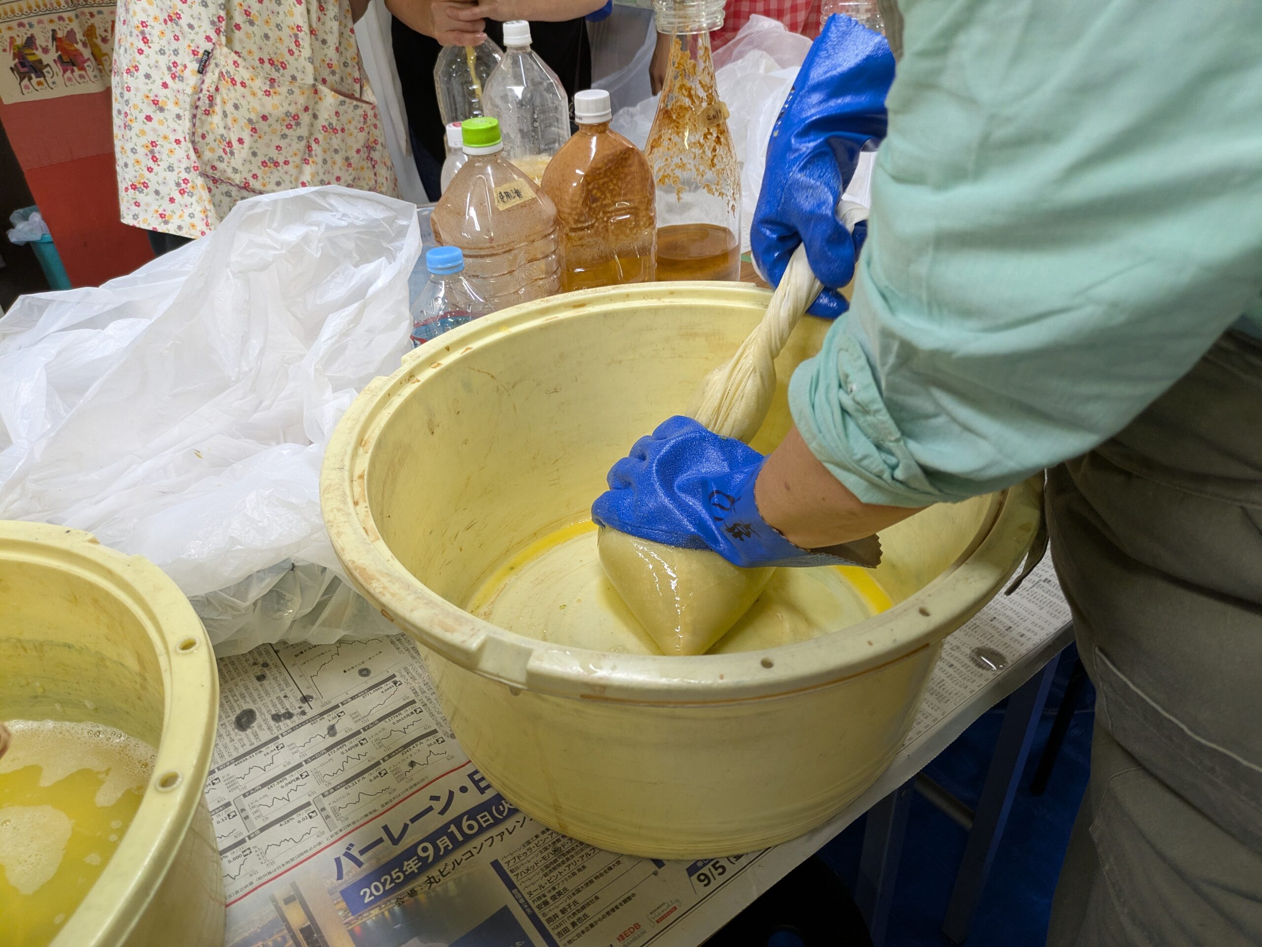 【てならい後記】染料づくりから学ぶ2日間の柿講習。柿渋染めワークショップ。2025(前半)