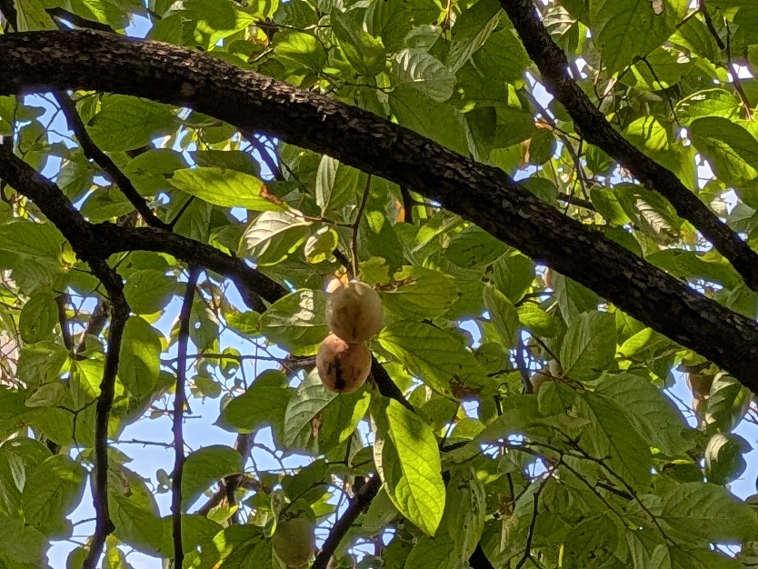 1ヶ月経ってほんのり色付いてきた渋柿。こうなるとタンニンが減ってしまい染料には向かないのです。