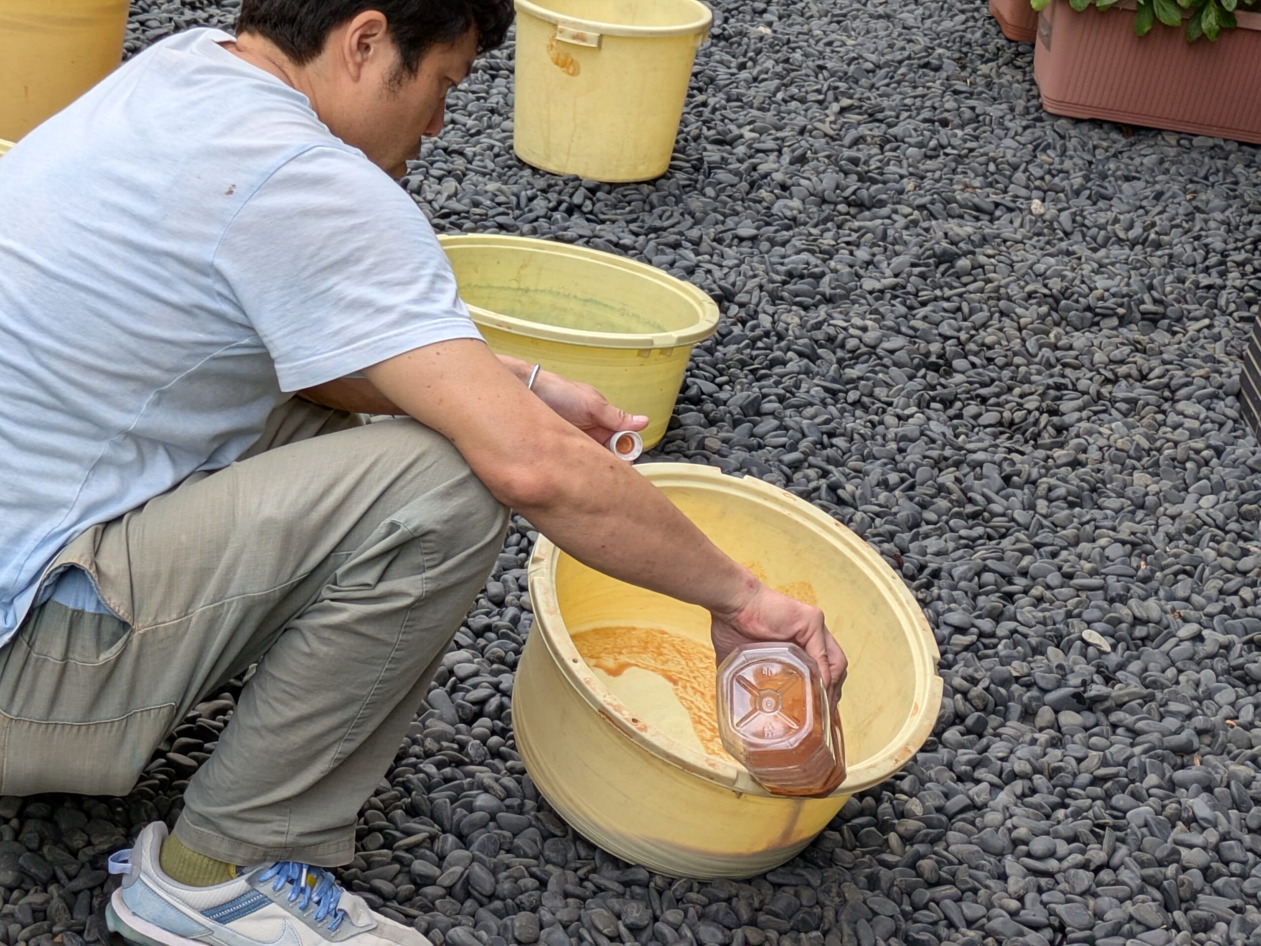う~ん。これが柿渋かぁ!暫くすると慣れてきましたが。。。