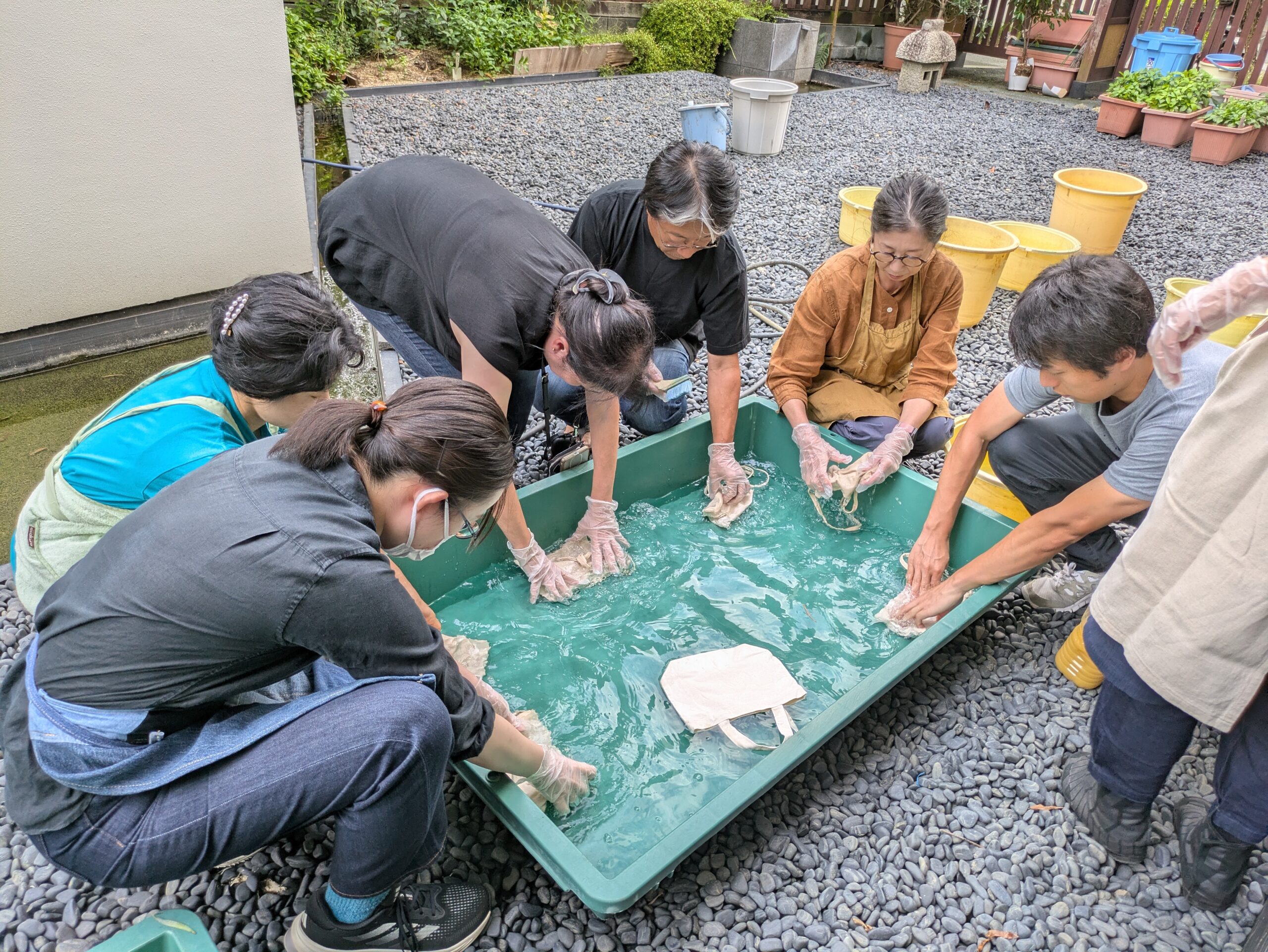 中秋の名月を翌日に控えたこの日、柿渋染めワークショップの後半、染めの回が開催されました。