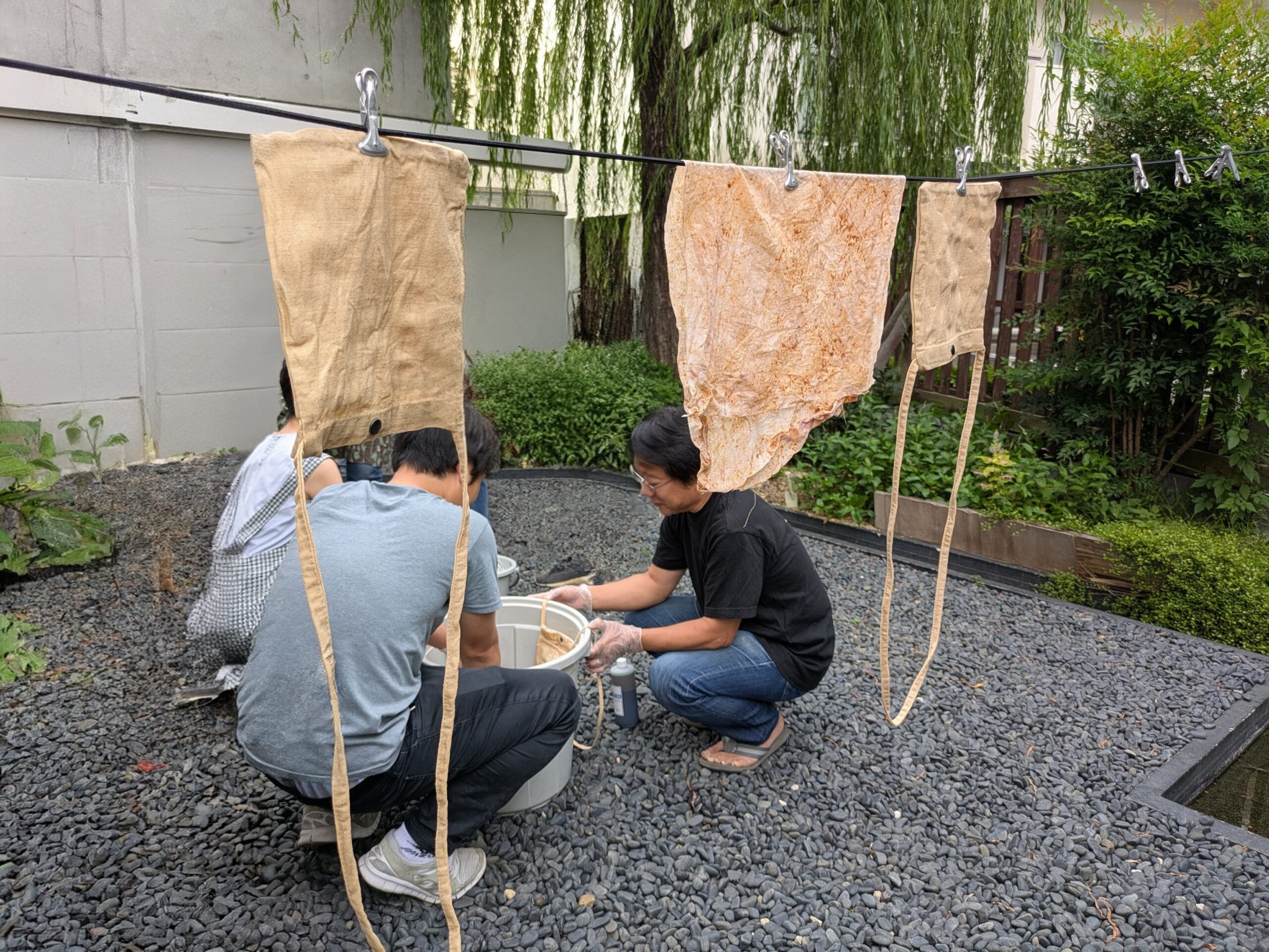 【てならい後記】 染料づくりから学ぶ2日間の柿講習。 柿渋染めワークショップ。2025(後半)