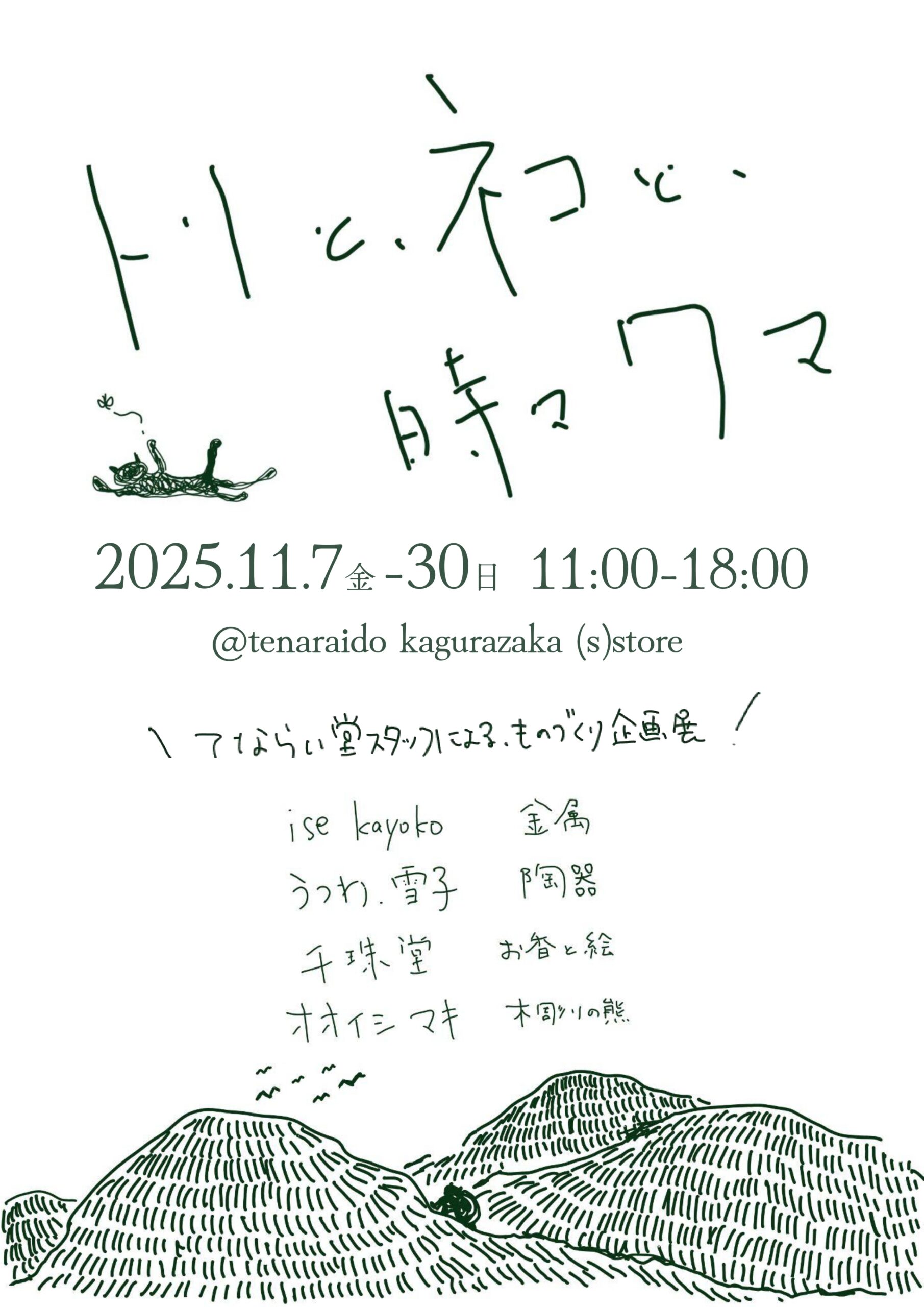≪ トリと、ネコと、時々クマ ≫てならい堂スタッフによる モノづくり企画展