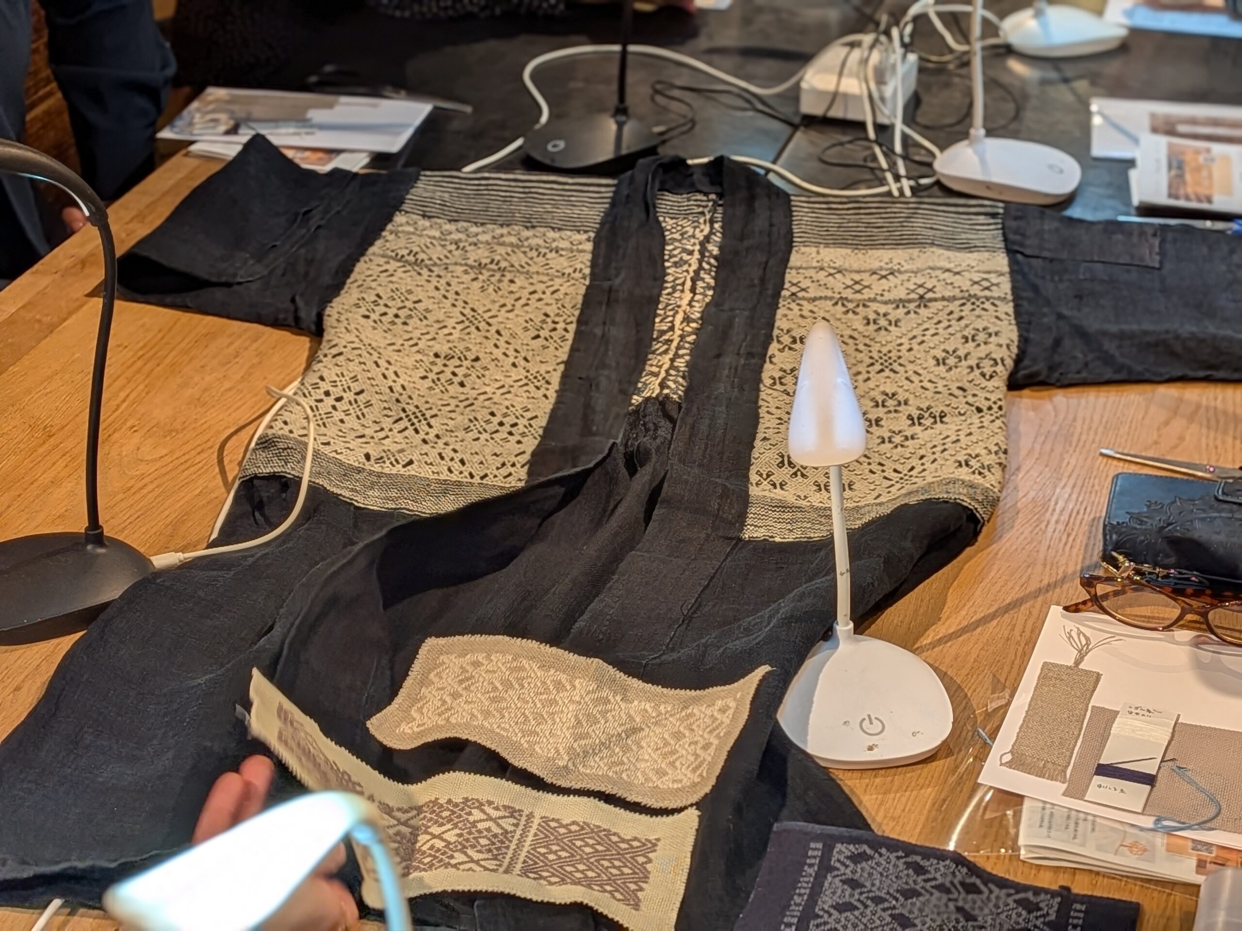 作業に入る前に、工藤さんから昔のこぎん刺しの羽織を見せていただき、皆でどんな仕事なのかを再確認。