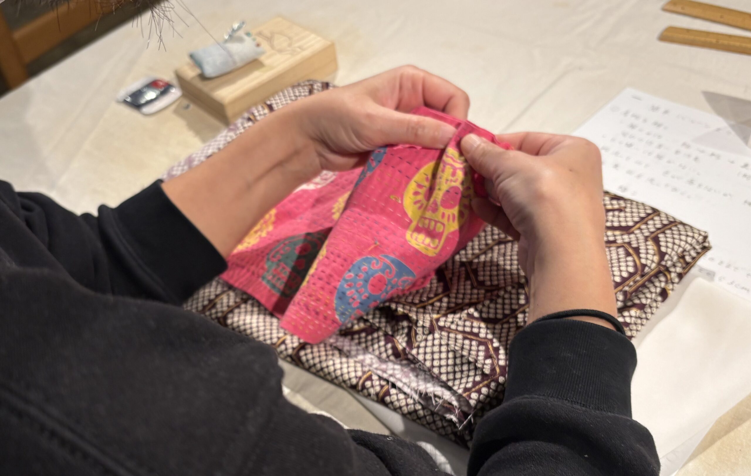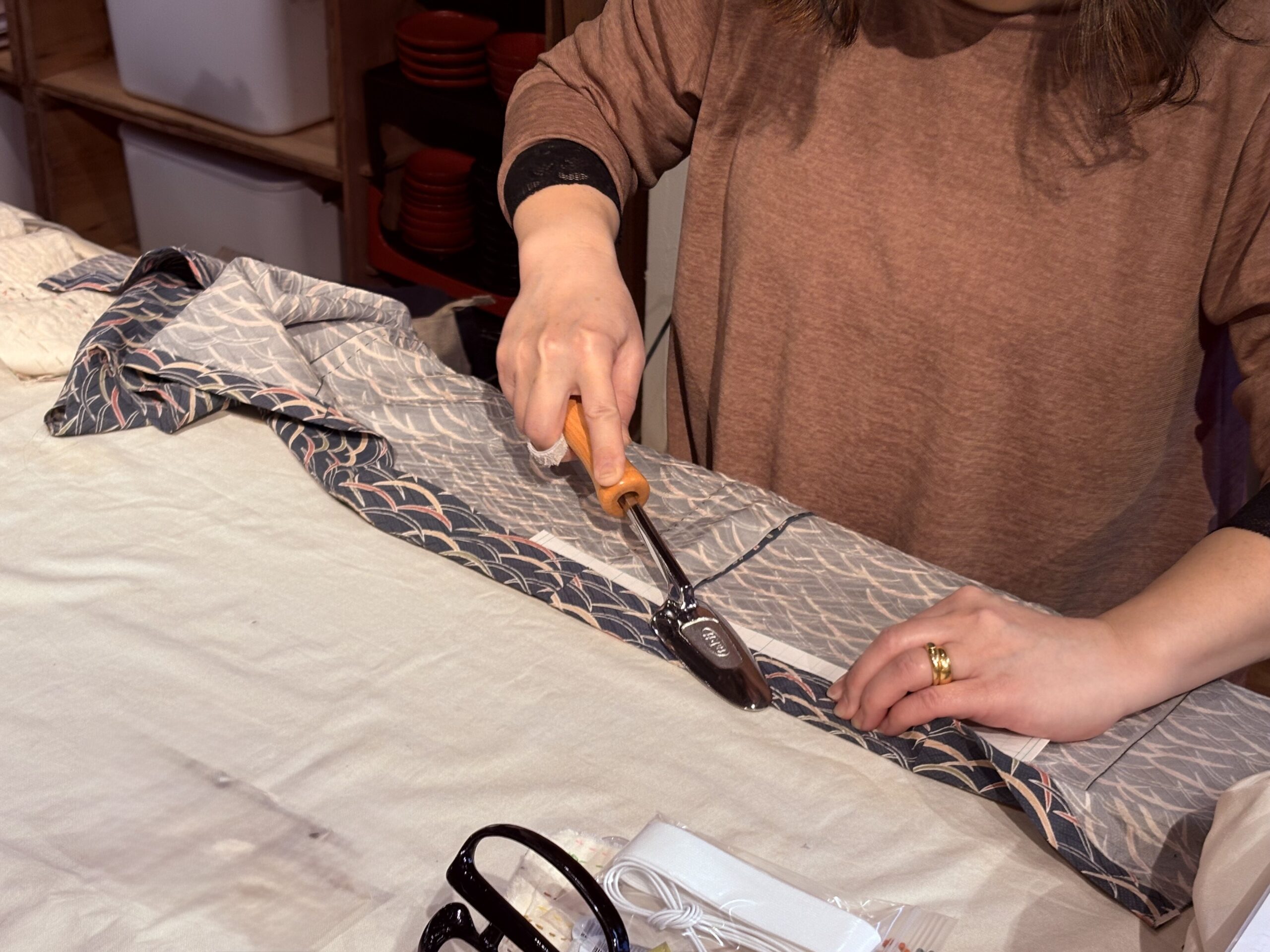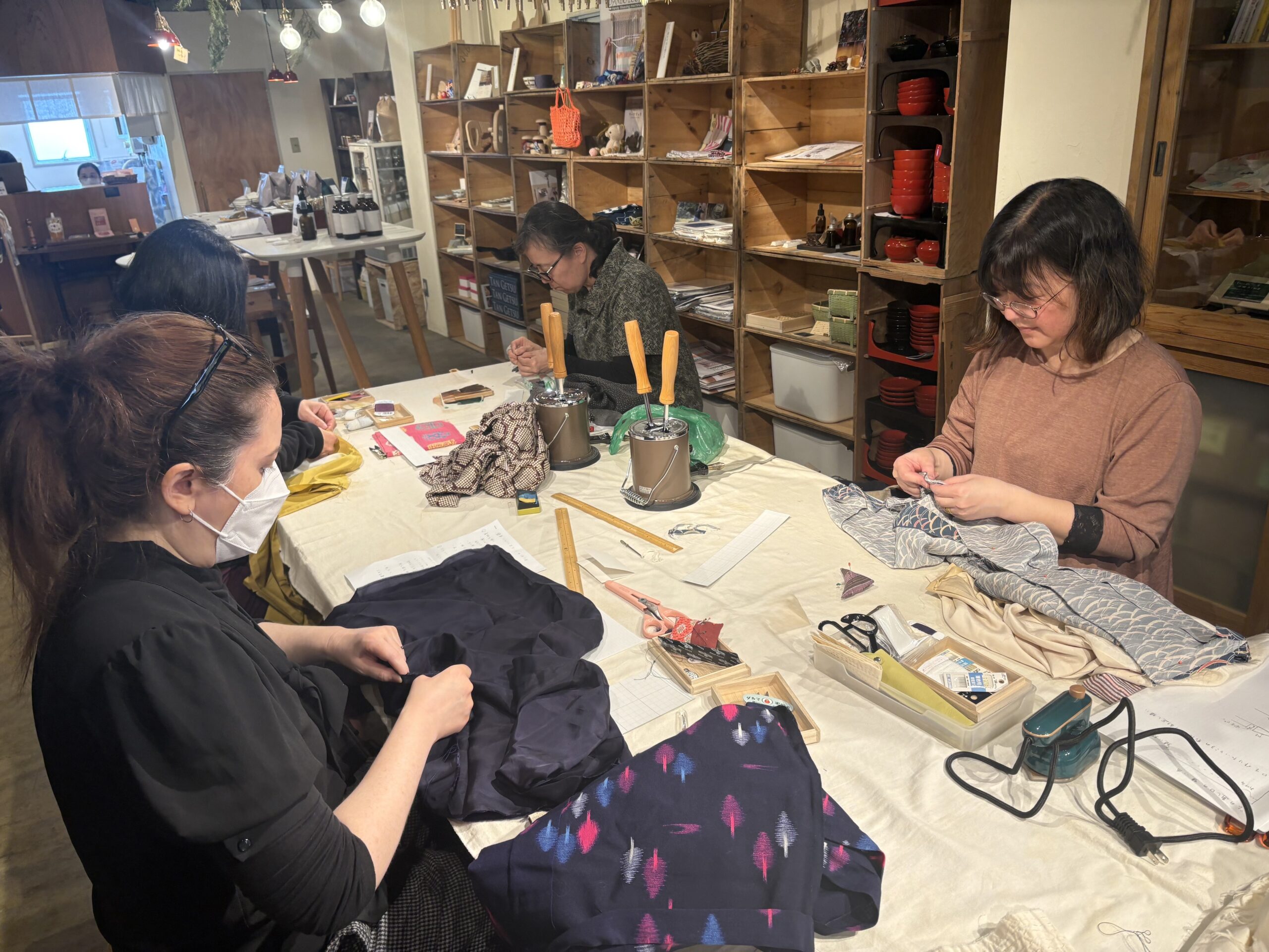 作り方はシンプルですが、みなさん着物の素材がそれぞれ違ったりするので、硬い布、逆に薄手でぺらぺらしたものは縫いづらいものなどのちょっと苦戦ポイントも。