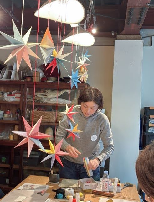 天井から吊るし、ゆらゆら揺れる星を眺めながら、一人ずつ、どんな想いでこの星をつくったのか、タイトルとともに共有しました。