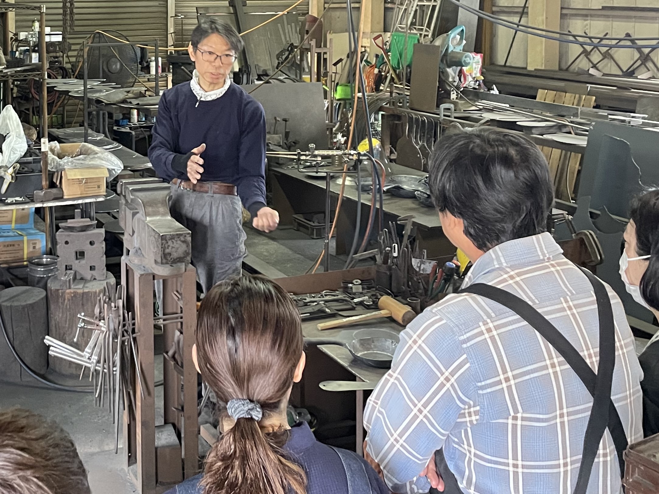 参加のきっかけはそれぞれですが、みなさん始まる前から工房内を見てこれから始まるフライパン作りに興味深々です。