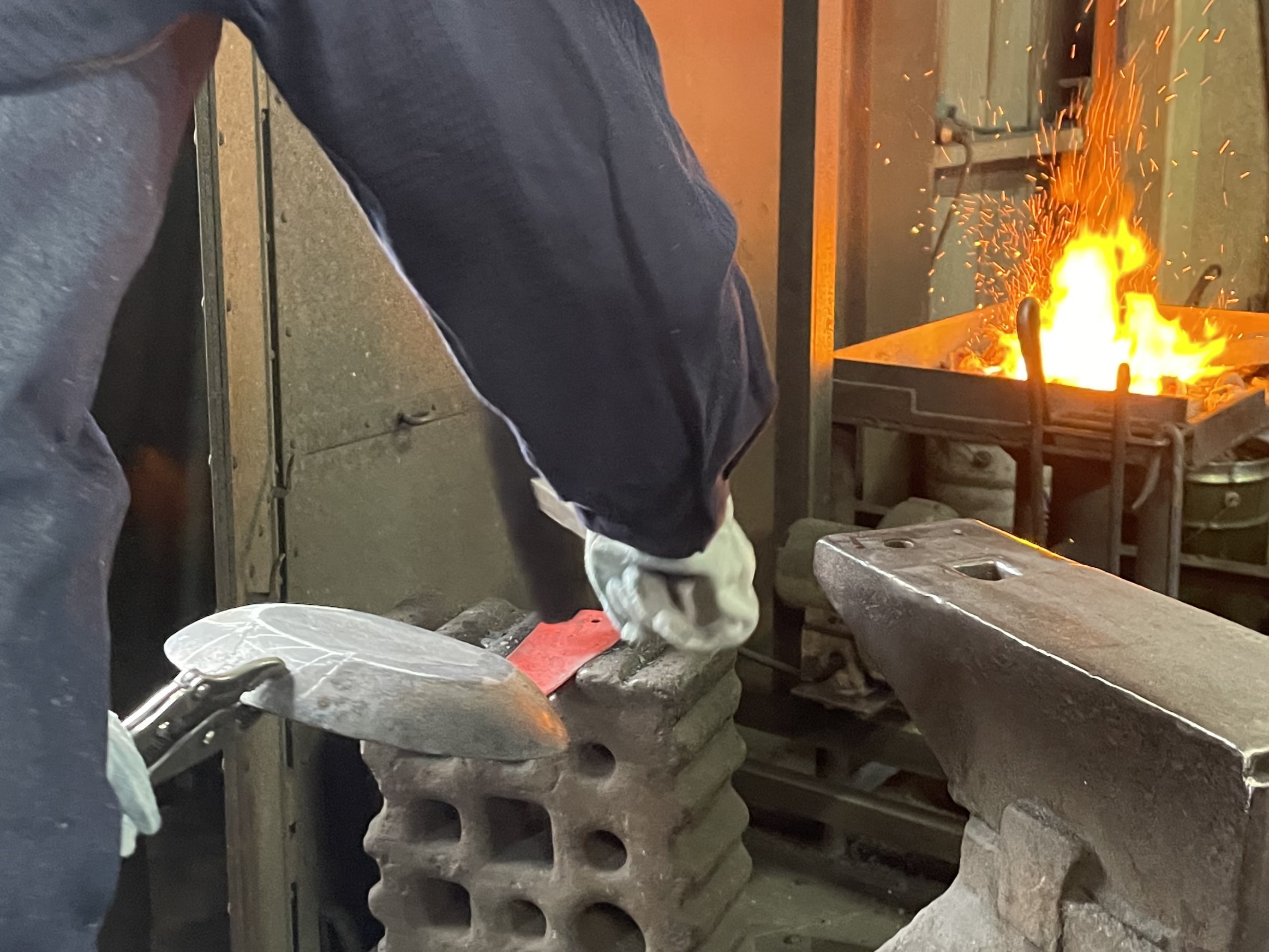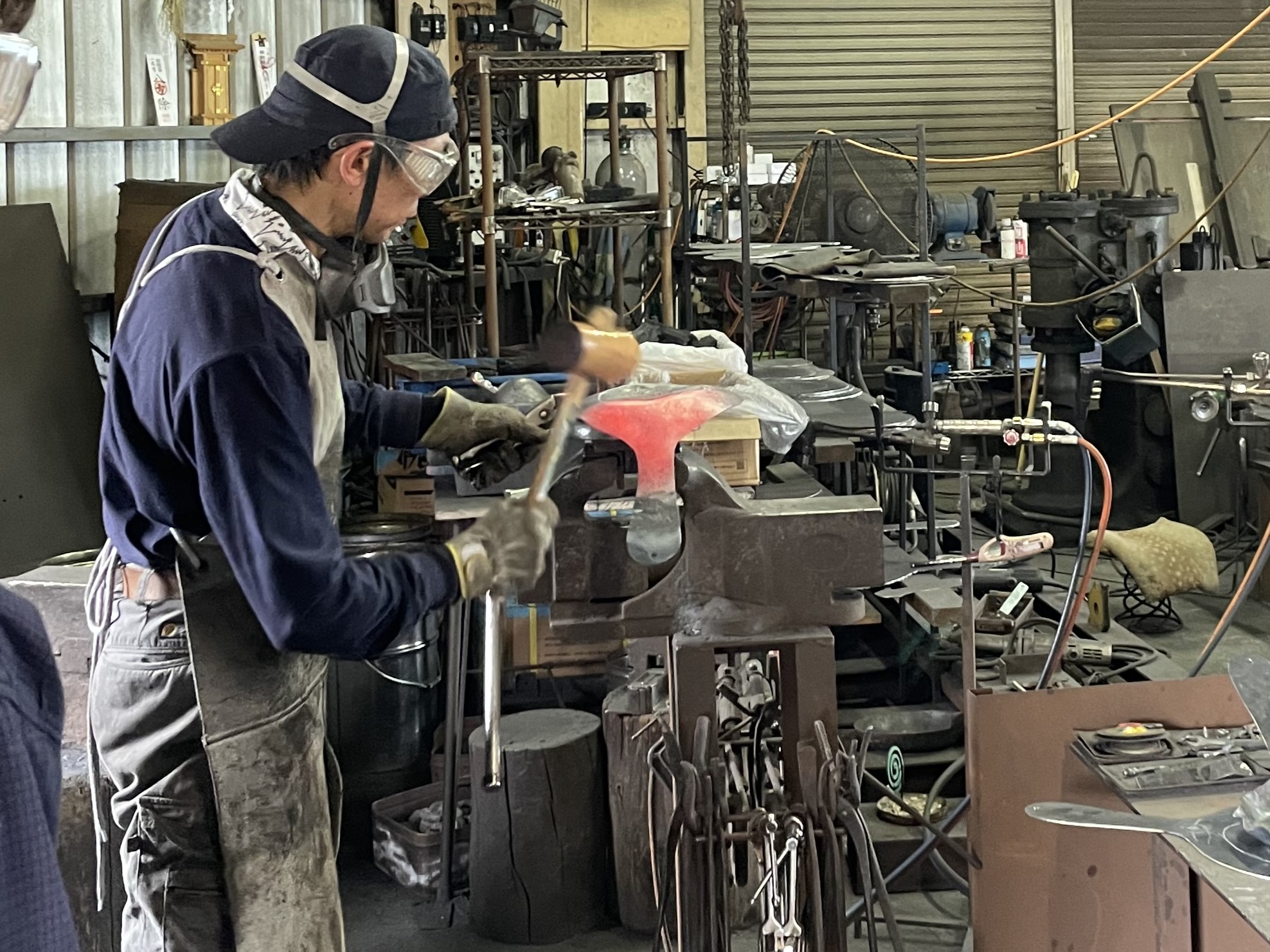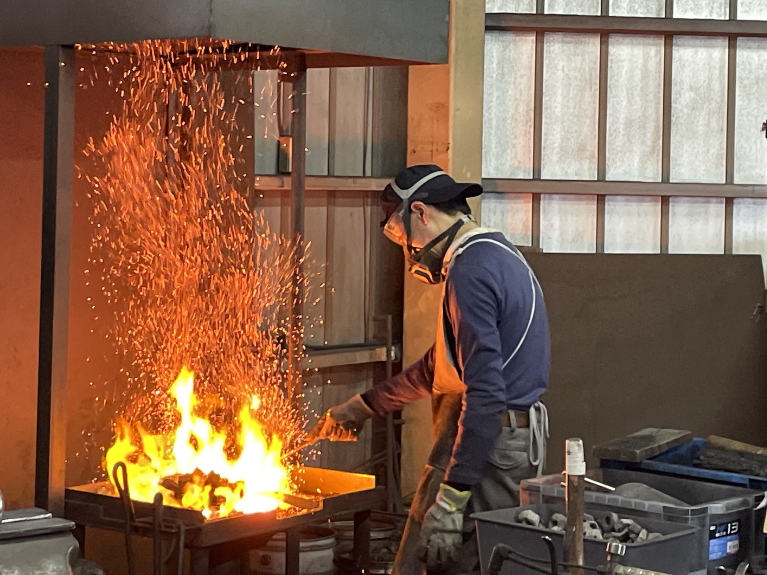 「以前は、こういう形にしたいということばかり気にして叩いていた時に腕を痛めてしまった…今はあまり形にとらわれずに、鉄の状態を見て叩けるようになったので余分な力をかけなくても、できるようになってきたのかもしれない」と教えてくれました。