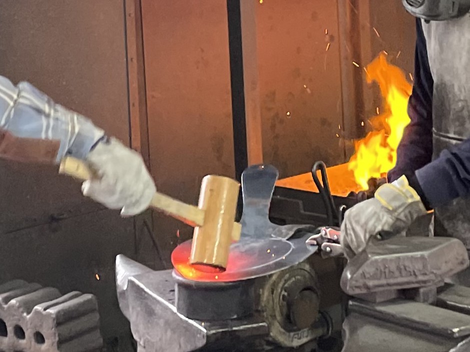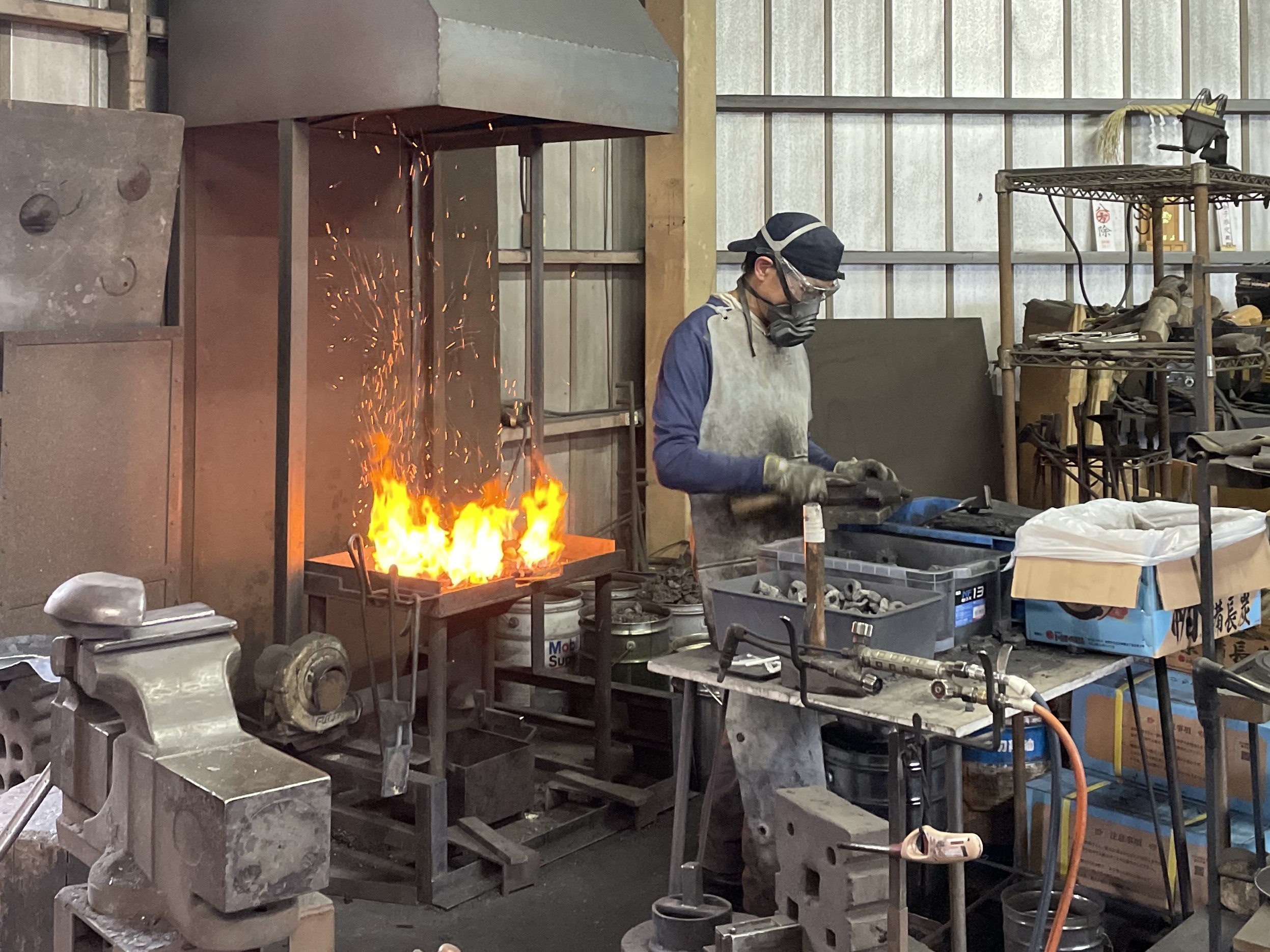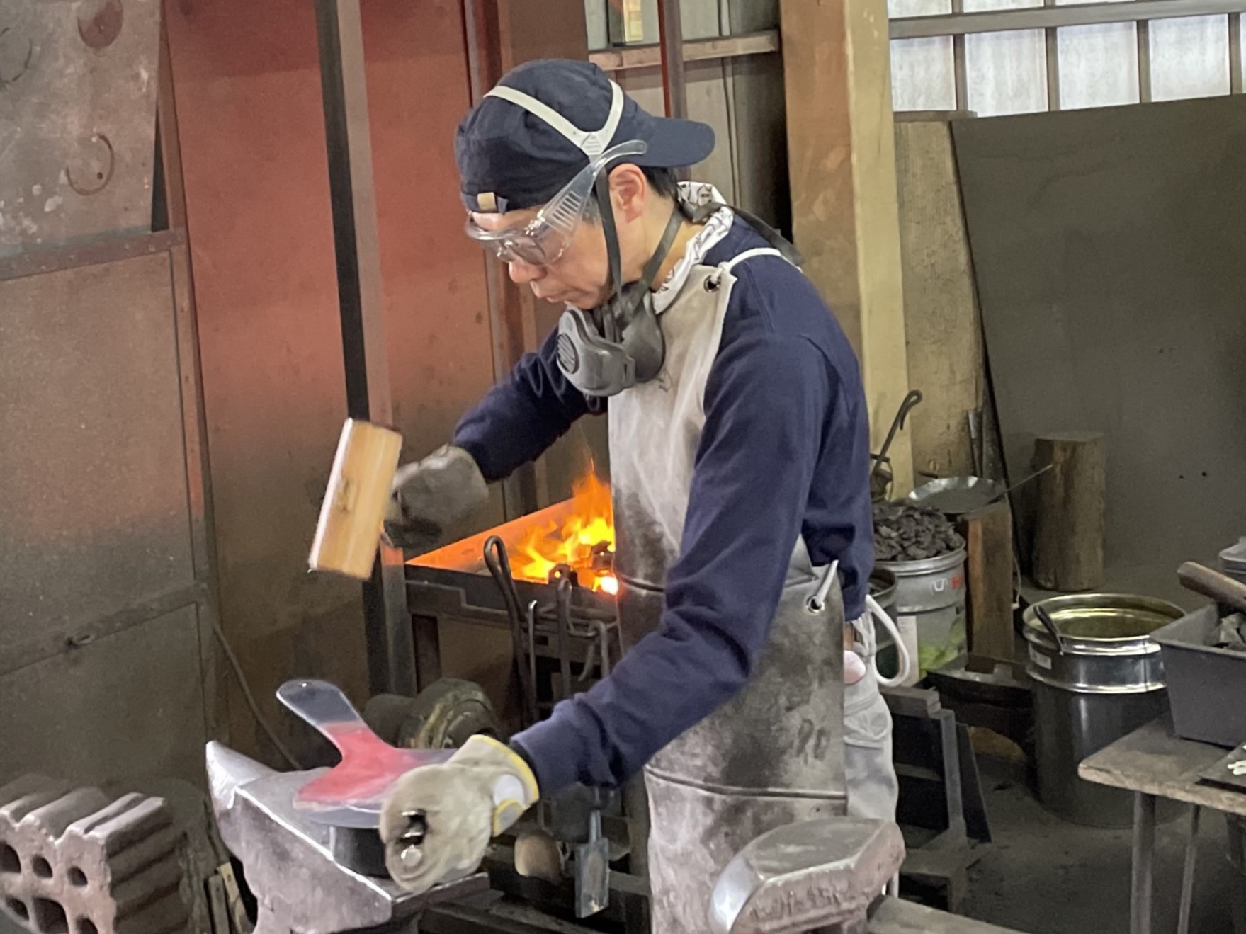「以前は、こういう形にしたいということばかり気にして叩いていた時に腕を痛めてしまった…今はあまり形にとらわれずに、鉄の状態を見て叩けるようになったので余分な力をかけなくても、できるようになってきたのかもしれない」と教えてくれました。