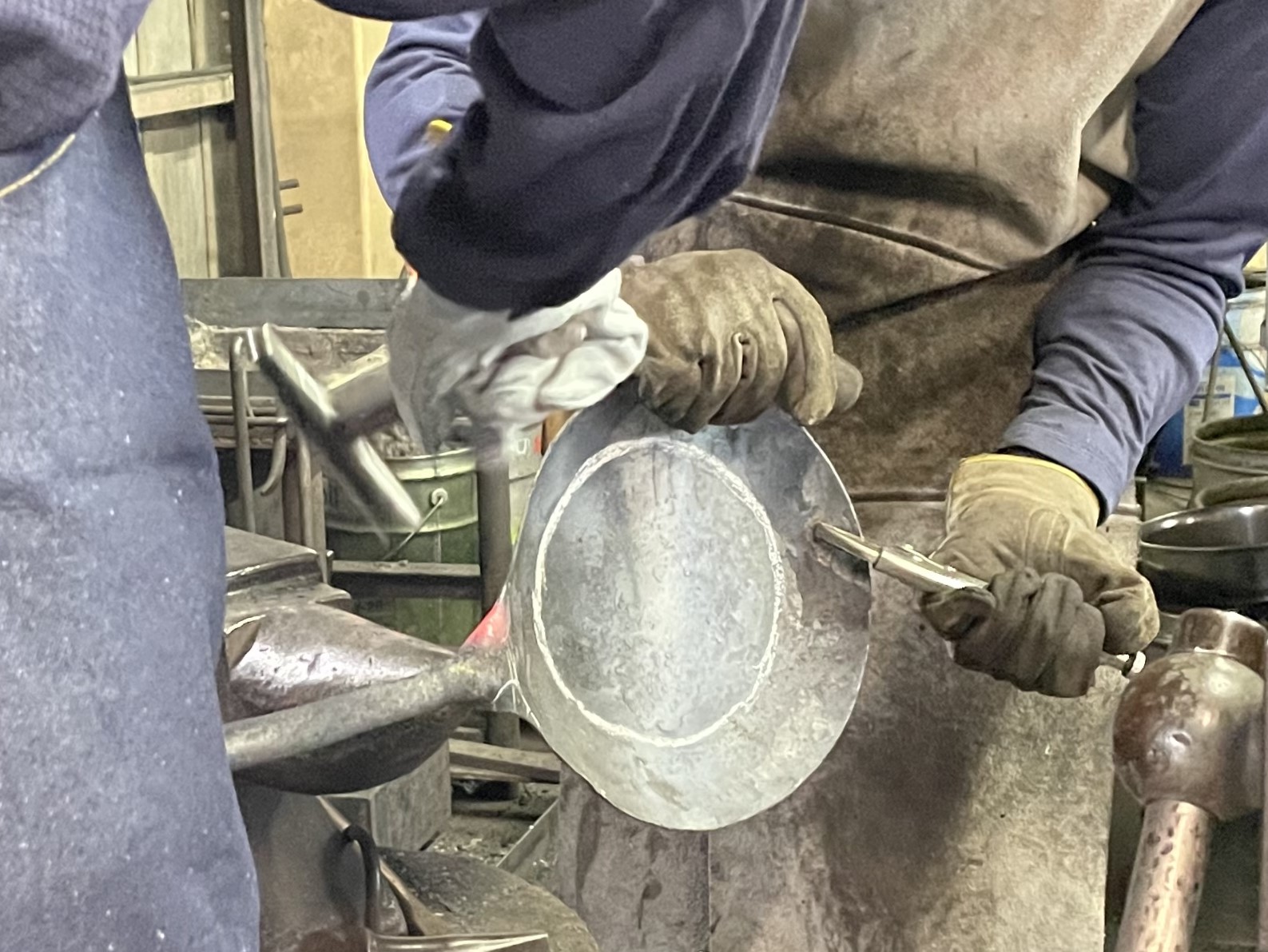 午後に入って、みなさん疲れもとれたのか最初から小気味よい音をカンカン鳴らしながら、フライパンの形を整えていきます。