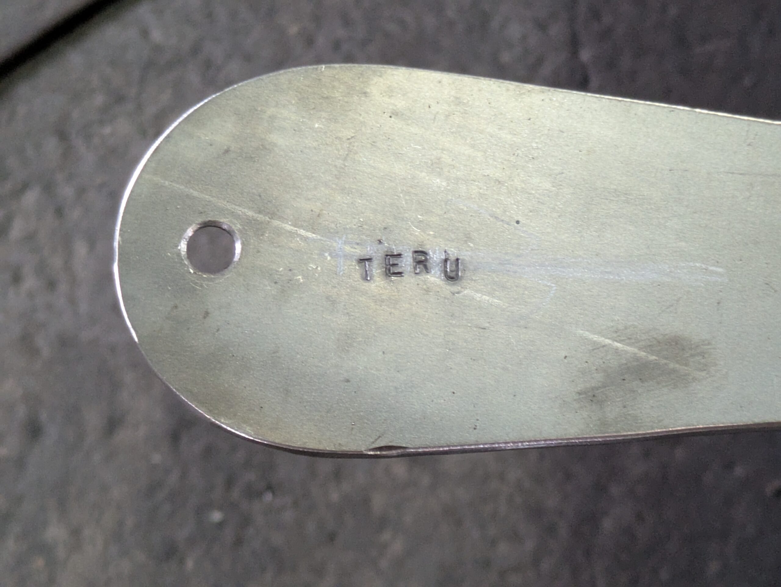 先ずは刻印をしていきます。イニシャルや名前など好きな文字を決めたら、金槌でカン!カン!カン!簡単そうに見えたけど位置を決めて一発で決めるのはなかなか難しい。