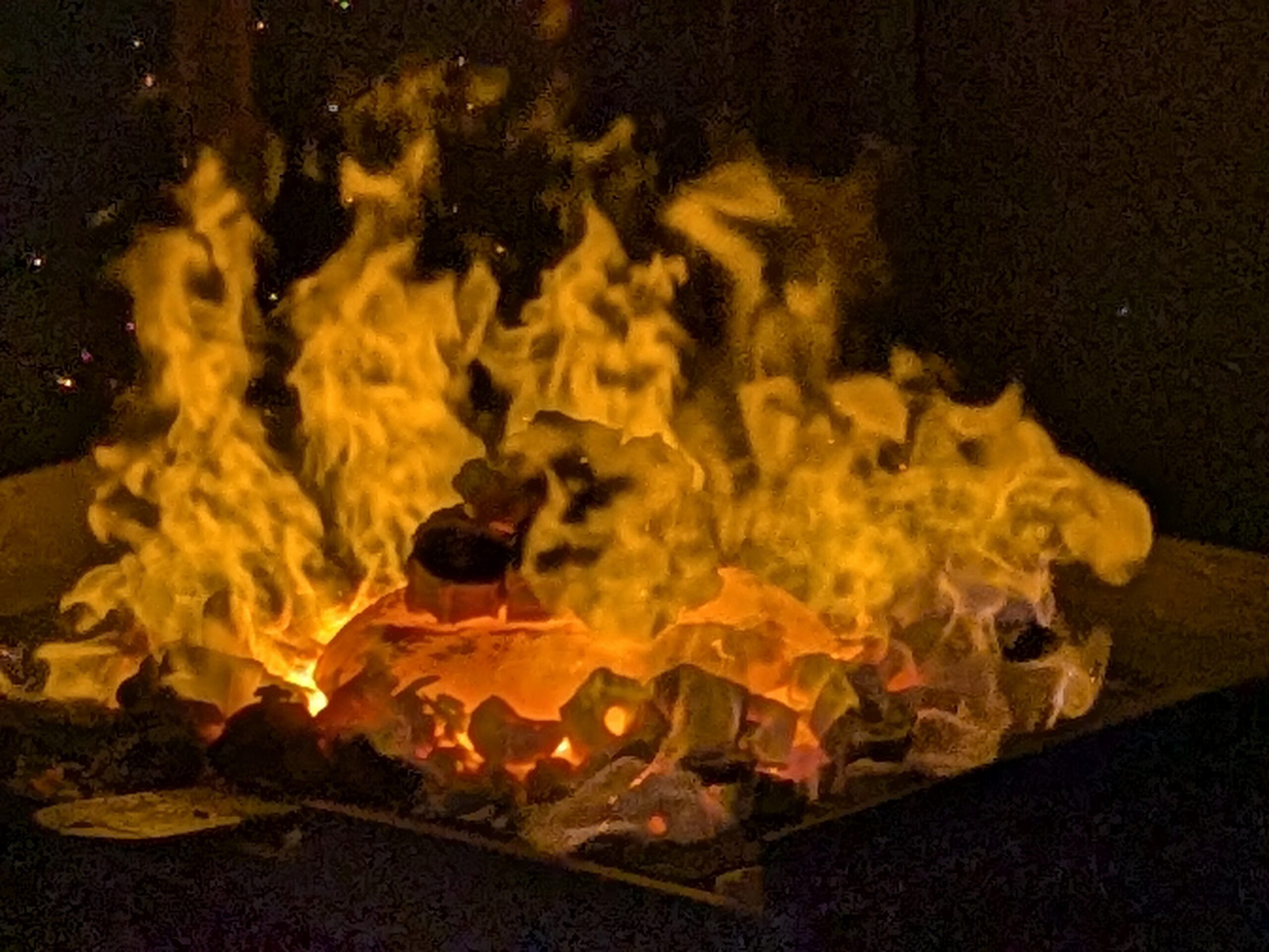 熱源はおがくずを固めて作った『おが炭』と『木炭』がメイン。CO2の発生が少ないものを使いたいと環境も視野に入れていらっしゃいます。化石燃料のコークスは温度を上げるのに必要だが極力使用を控えて。バーナーも水素ガスのものを使用。あくまでも環境にやさしいものを使いたいと。