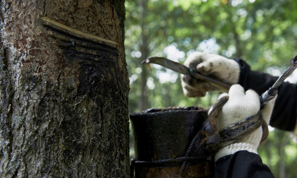 何本も漆掻きのための線が入った漆の木、それでも自分を守るために漆を出し続ける様に、たくましさと健気さを感じずにはいられませんでした。