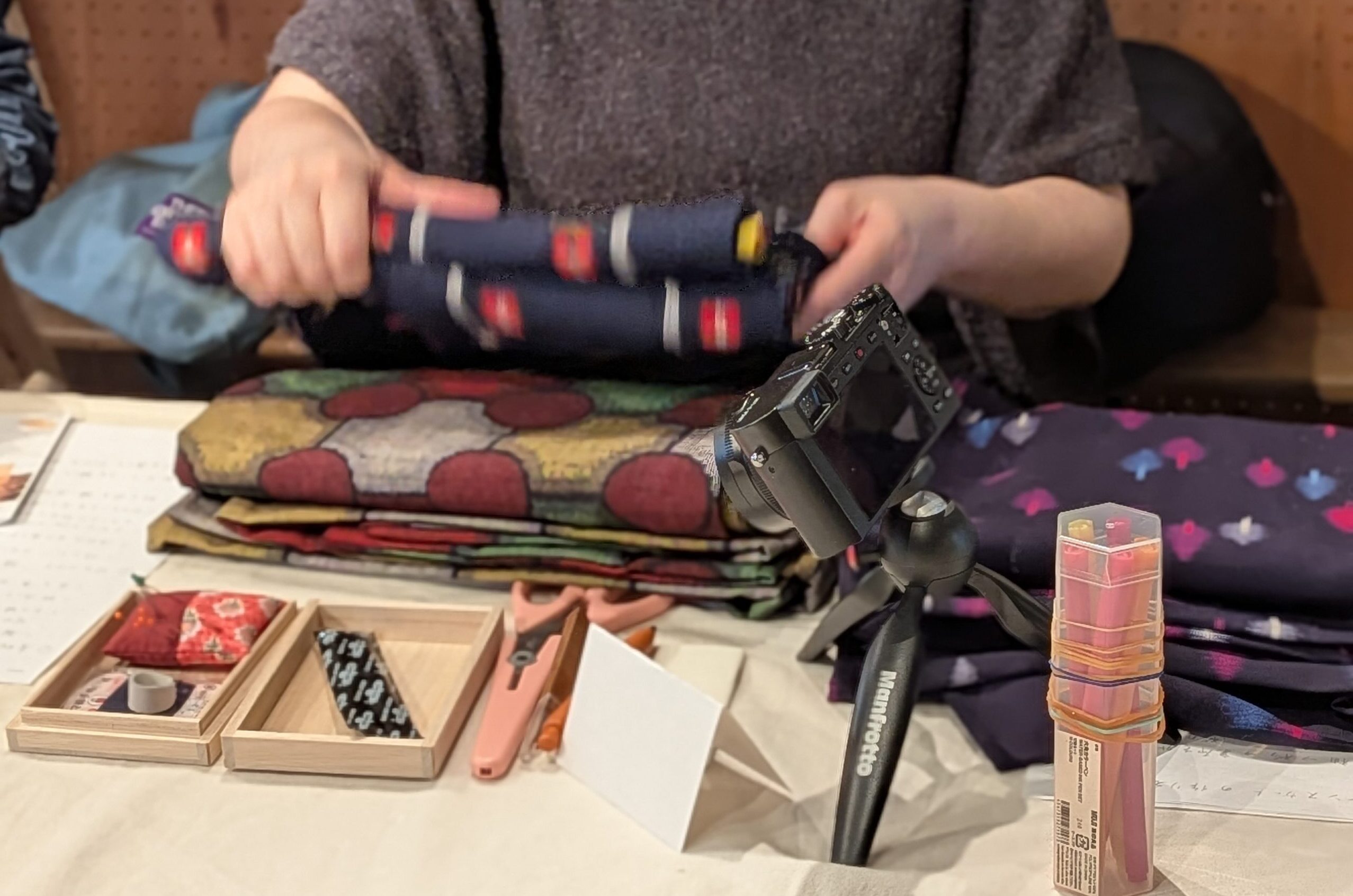 着物はもう着ないけど家にたくさんあったり、今回のバルーンスカートのためにリサイクルショップなどで探してきたという方も!持ち寄った着物を見せ合って、ワイワイとスタートしました。