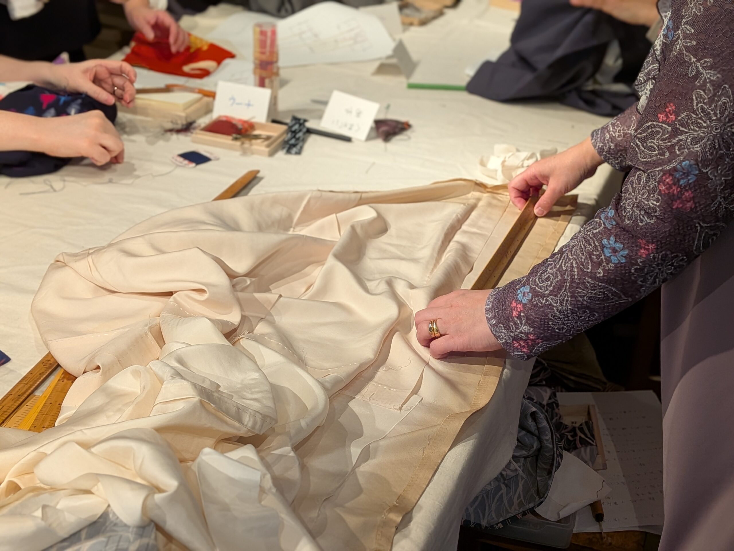 【てならい後記】 ツヅクキモノの和裁教室 〜着物をほどいてバルーンスカートを仕立ててみる~1回目