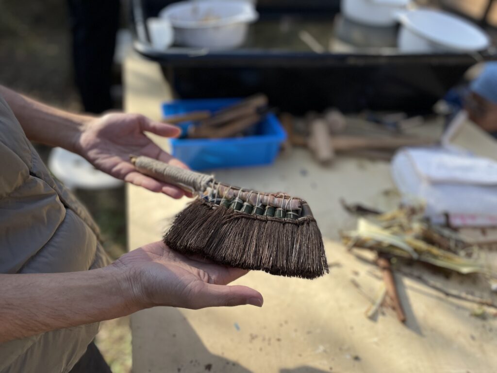 濡れた紙の中の空気を抜く時に使うハケ。馬毛だそうで、とっても美しい道具でした。