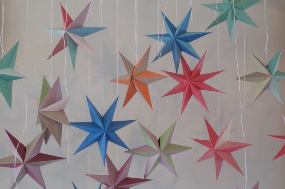 Folding Starの中心となる折り紙の星もある日、星型の照明を見ながら「あの形を自分でつくれないかなー」と思ったのがきっかけで、そこから折り紙と糊を使って、この星を作り出したそうです。instagramを見てもらうと分かりますが、とっても美しい造形なんです。