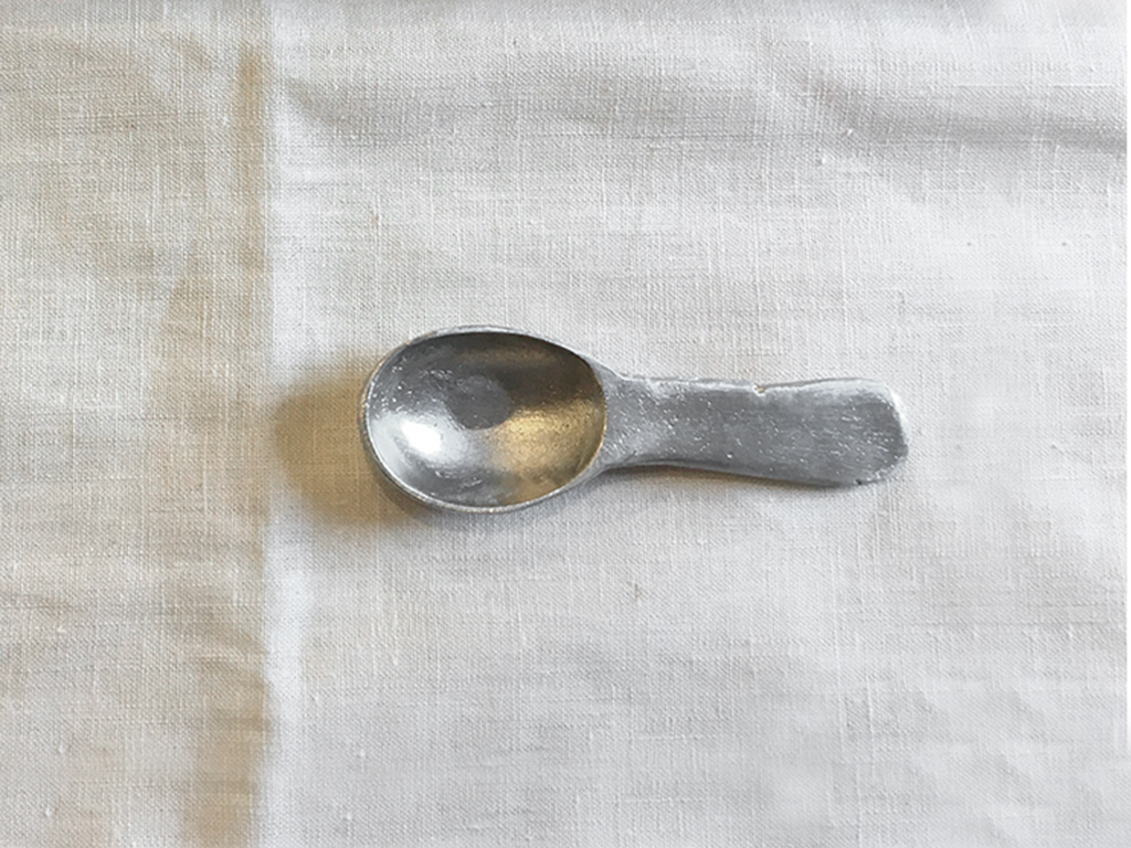 この錫を溶かして、小さなスプーンを作ってみましょう。