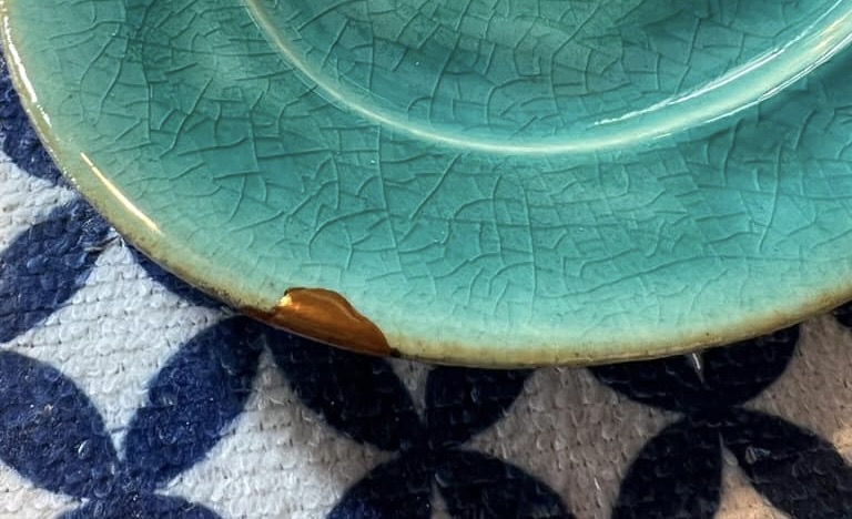 シンプルさがもてはやされる時代も長く続いていますが、シンプルな中に少しの装飾が生活に彩りを与えてくれます。だから、真っ白なお皿に一筋の無造作な金のラインを引いて仕上げる金継ぎは、今の私たちの気分に合っているのかもしれません。