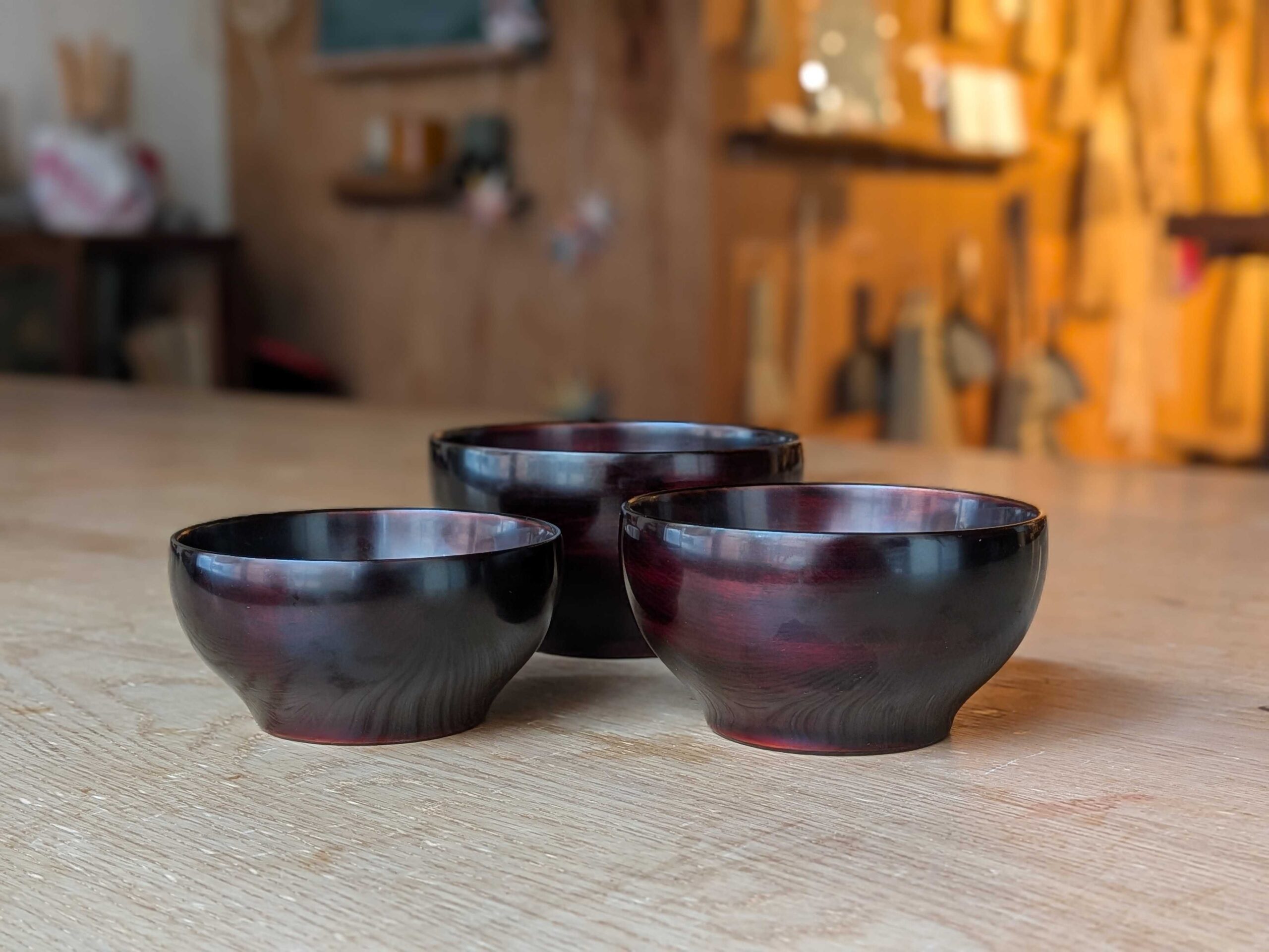 「安く早く便利に」を突き詰めた道具が私たちの身の回りに溢れる中で、「めぐる」の漆器は、樹木の恵みを食卓に取り入れることで、自然の再生のリズムを意識できる様になるという考えで作られていました。素敵すぎると思いませんか?