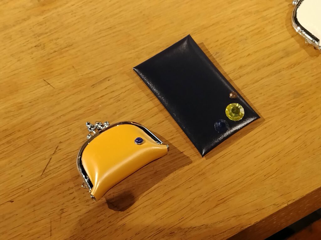 革にデコれる飾りカシメ(ストーンリベット等)もご用意しています。縁ギリギリだと口金が入らなくなるのでお気をつけて。