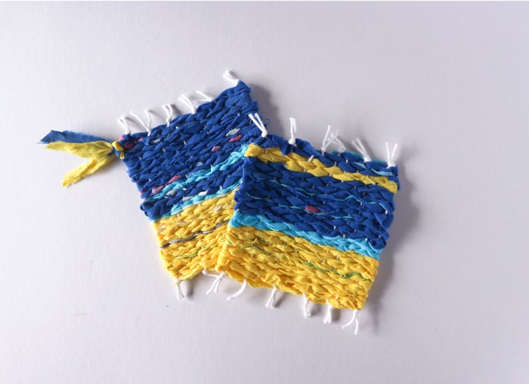 また、その後は今回のウクライナカラーに限らず、いつでも裂き織での作品作りをおうちで楽しんでもらえると思います。様々な裂き織作品を作ってみてください。