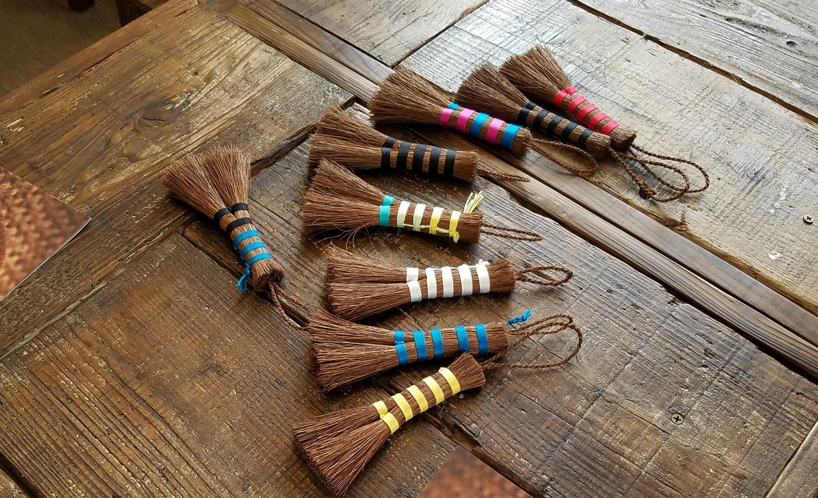 棕櫚を使って、ミニ箒もしくは鍋敷きを作ります。高田耕造商店さんからのお土産付き。 |