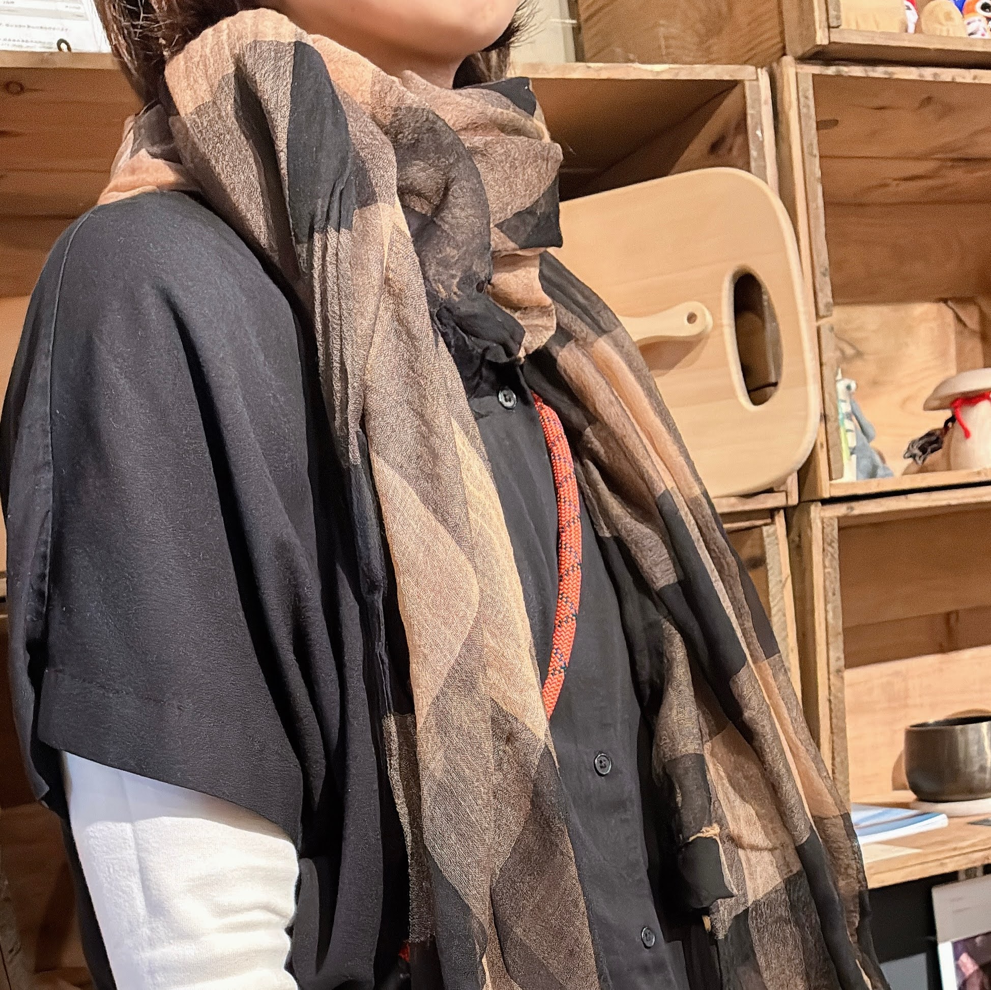 (玉ねぎの染め替え回は来年の1月予定しています。)自然な風合いのストールで首元のお洒落も楽しみましょう。
