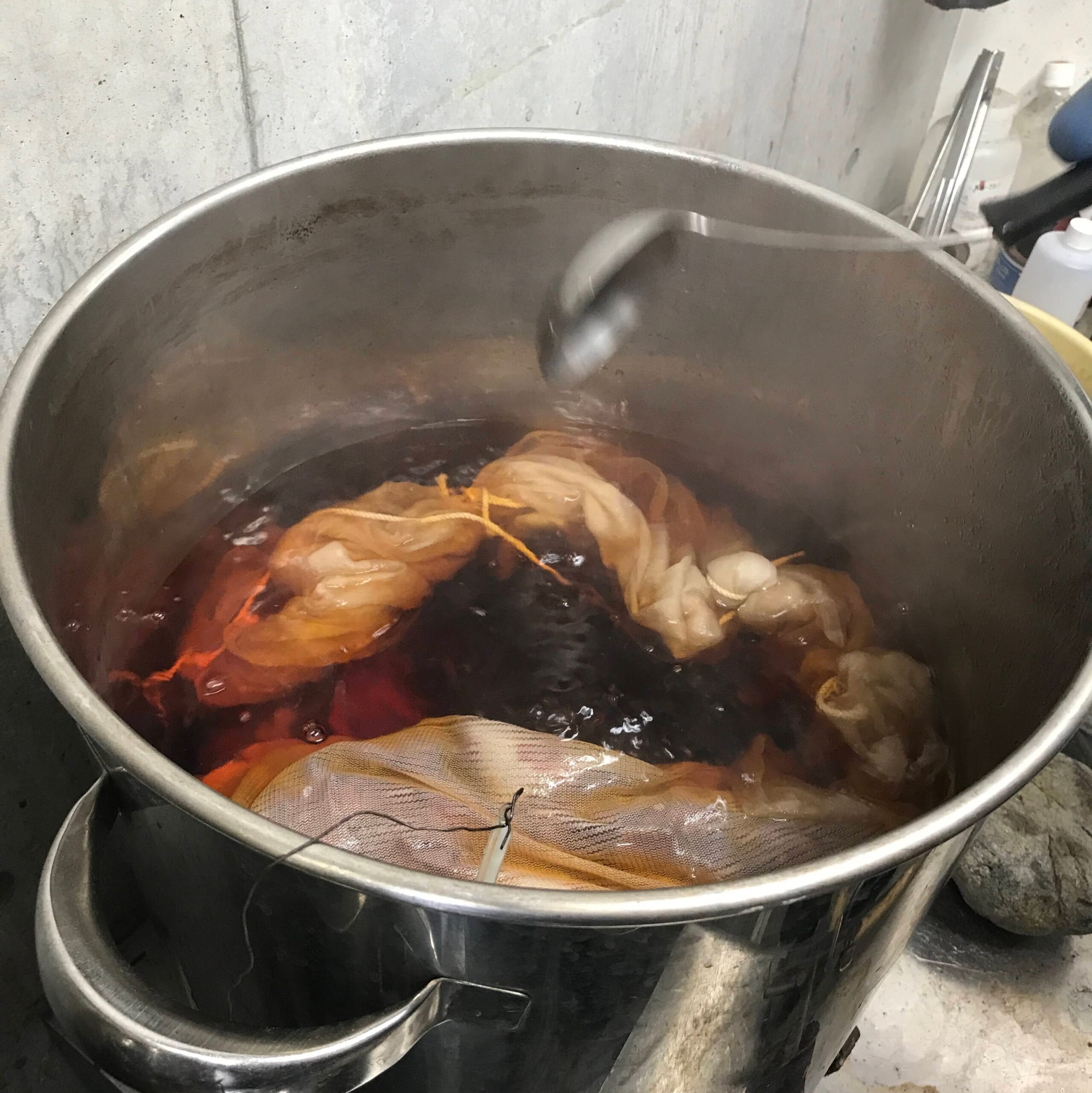 ご自宅で貯めた玉ねぎの皮があれば、ぜひお持ちください。染めるものと同じくらいの重さの皮で、しっかりと色が出るそうです。もちろん、染めるのに十分な量はこちらでもご用意しています。