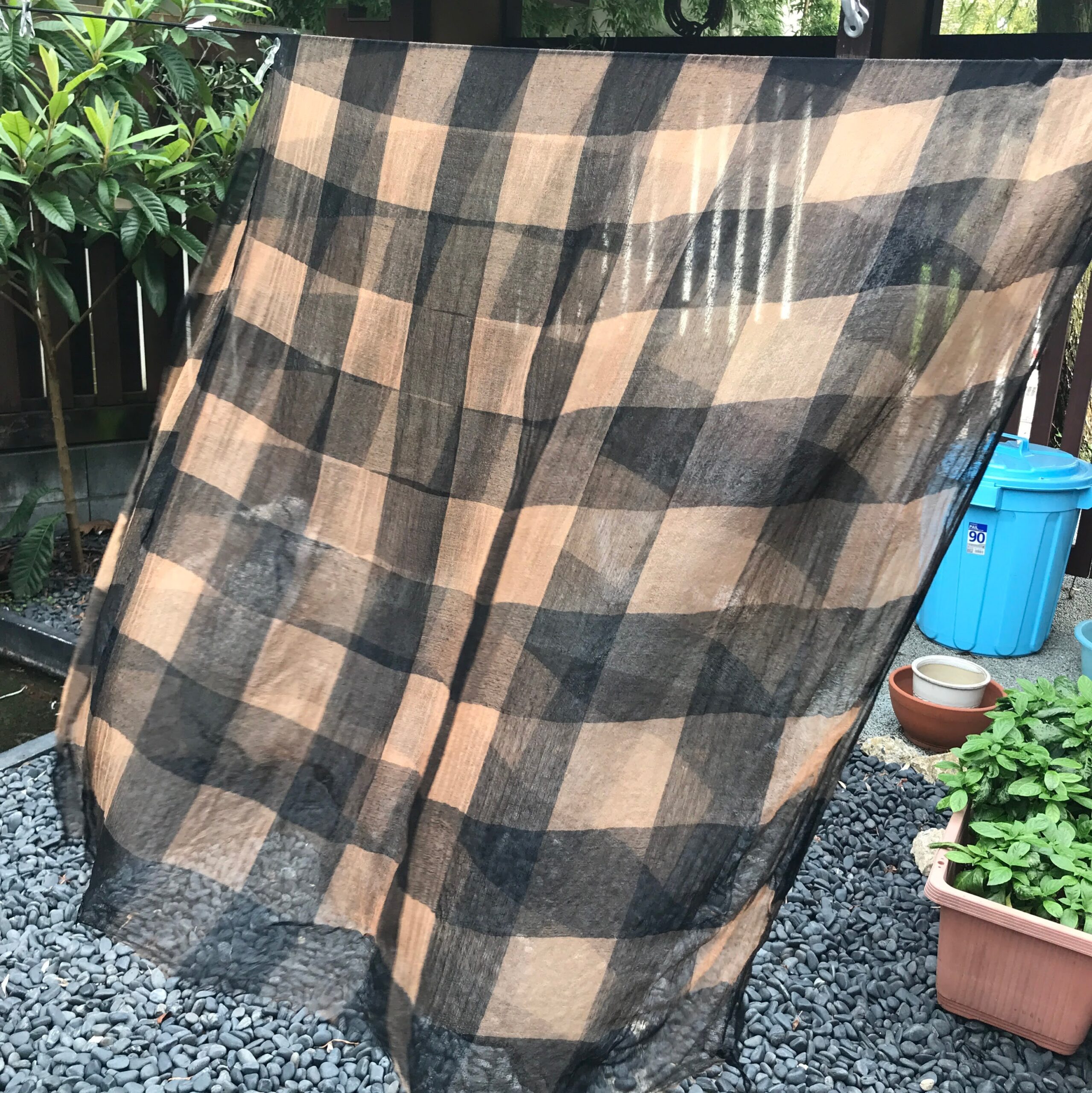 いつもは玉ねぎの染め替えの回でしたが、今回はベージュ無地と市松白黒の2種類のストールから選んで玉ねぎ染めをします。