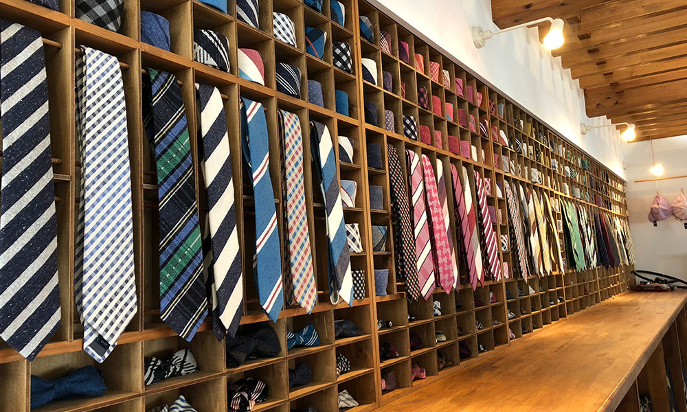2008年にオリジナルネクタイブランドを立ち上げ、10年ほど前からはオリジナルブランドのみを取り扱っている羽田忠織物。オリジナリティ溢れる商品はもちろん、内装ひとつひとつも素敵で遊び心が感じられる工房併設のショップも必見です。