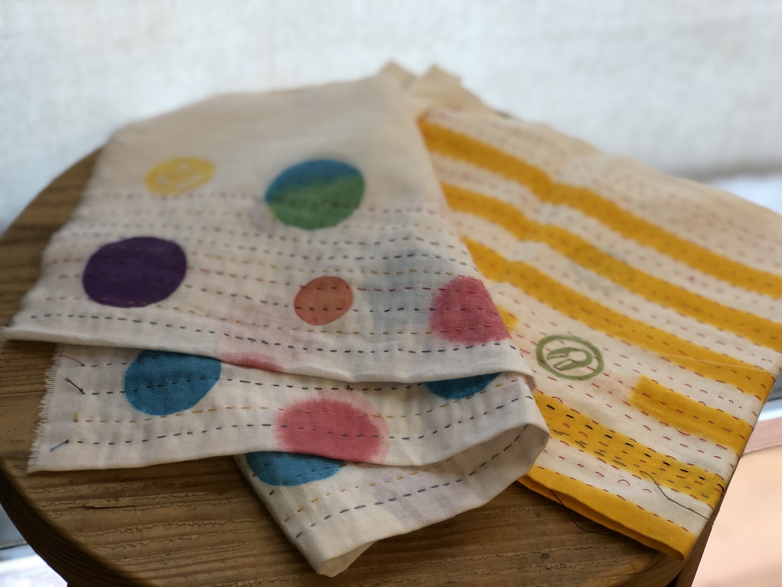 運針で仕上げたふきん。糸を入れることで強度が増し、より使いやすくなります。