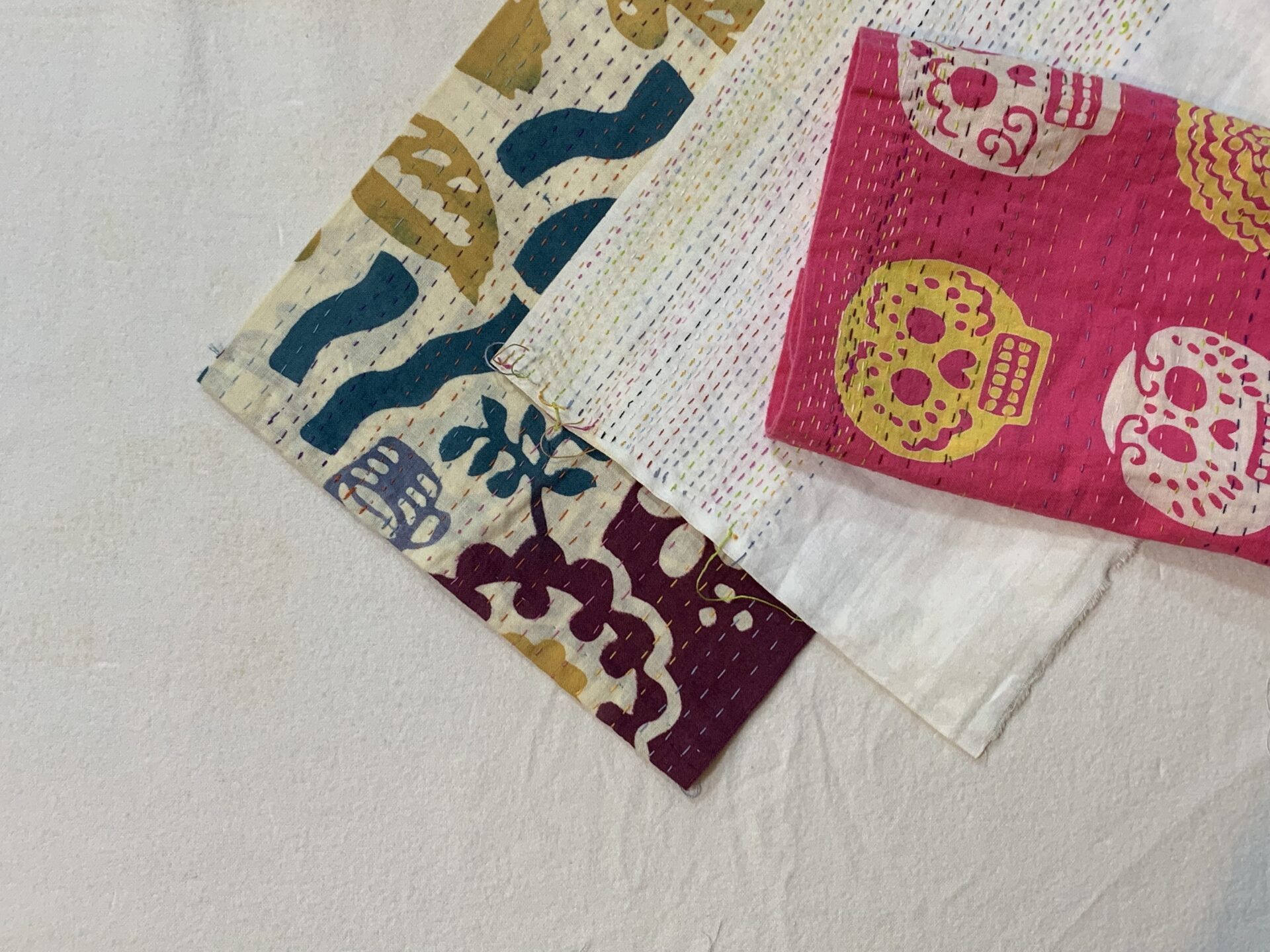 にじゆらさんの可愛い手ぬぐいの上に、自分でチクチクと一針ずつ縫い進める。ワークショップが終わったときには、運針の技術と、愛着あるふきんが手に入ります。